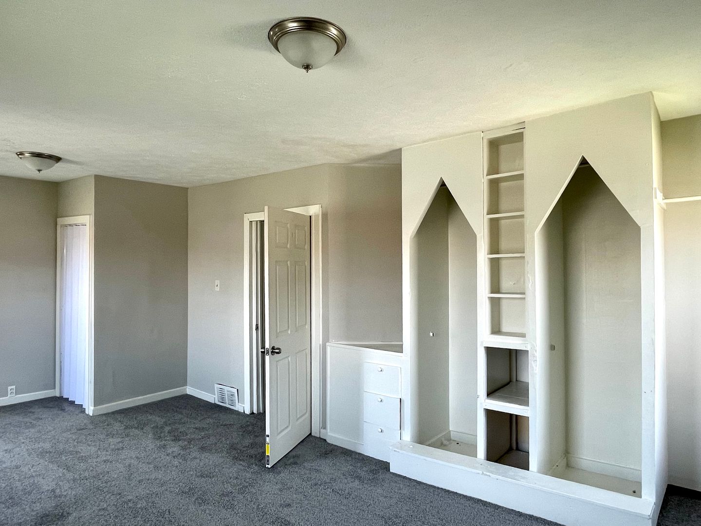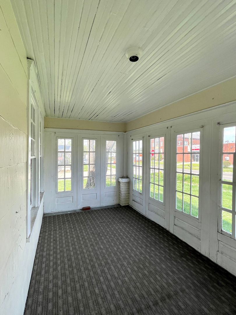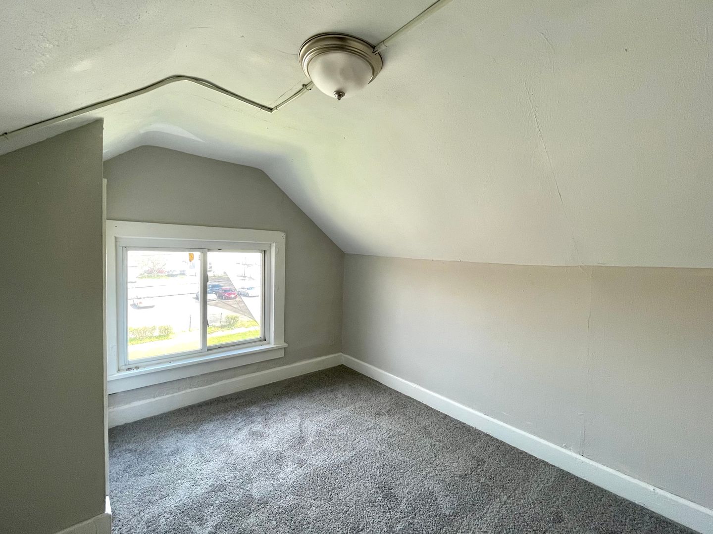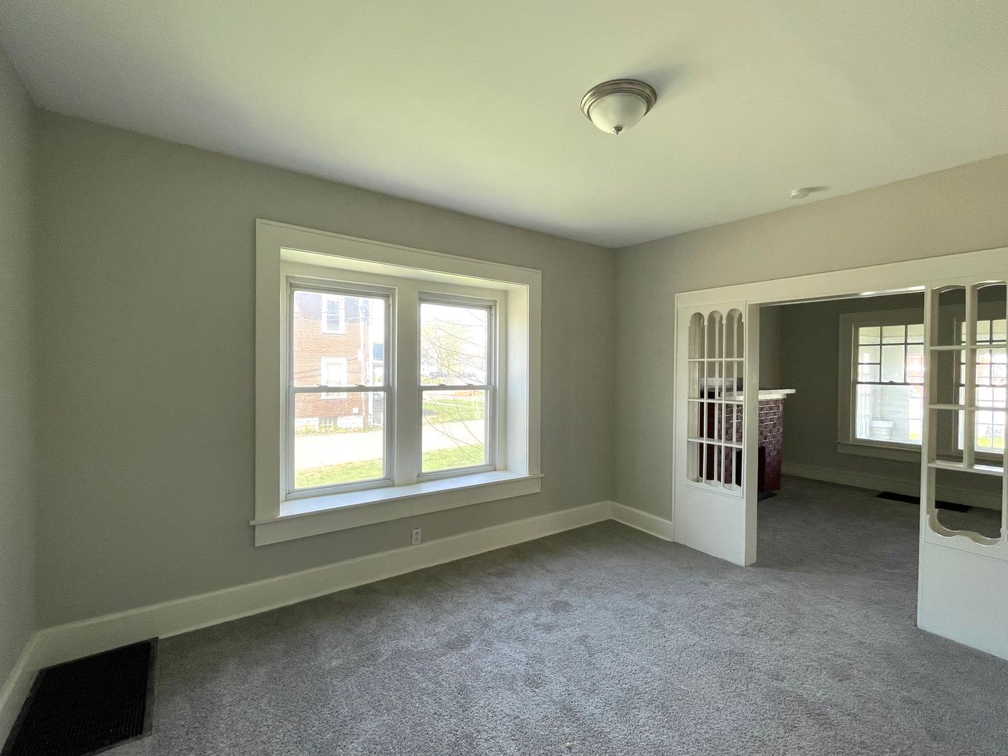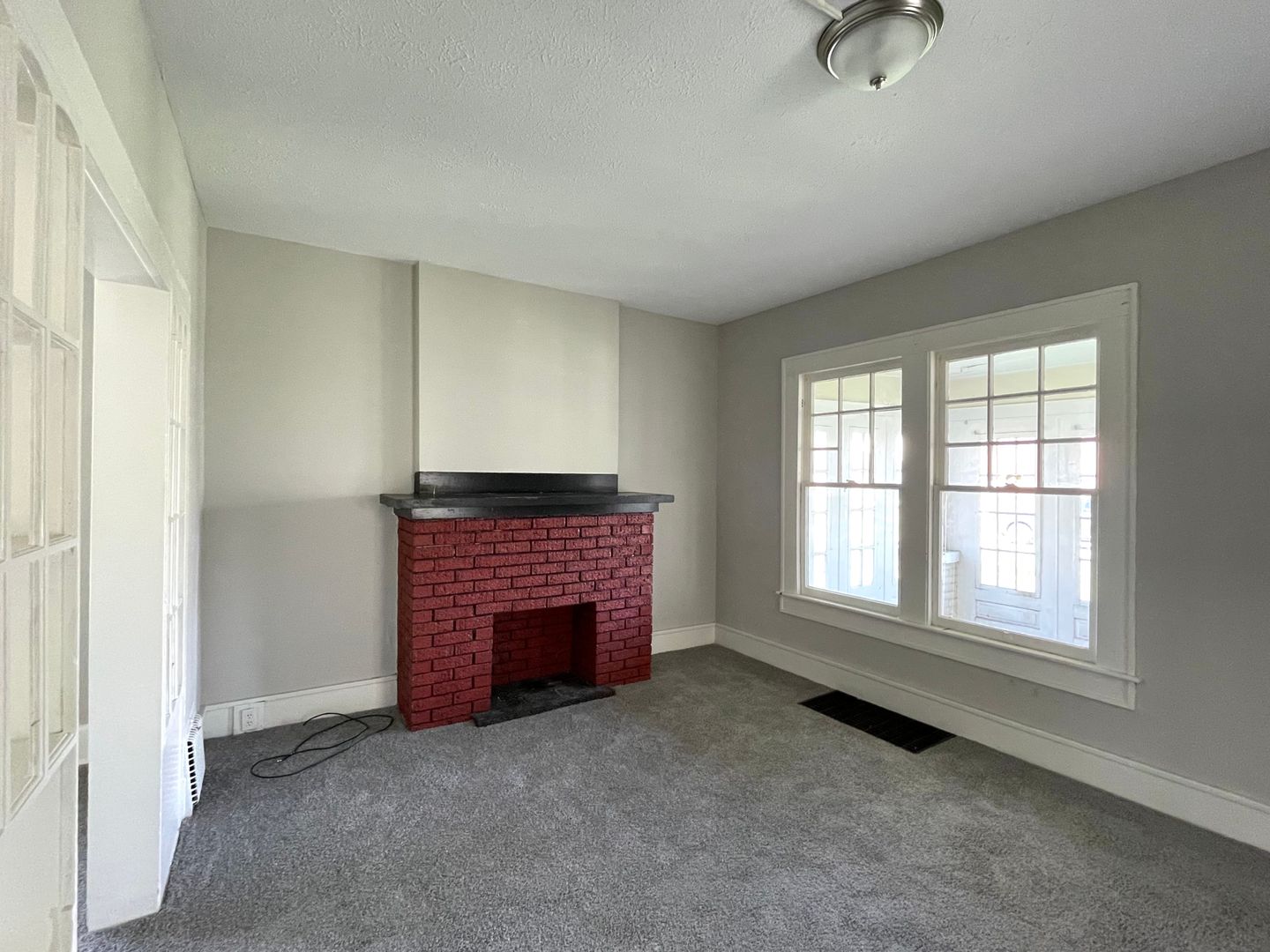 This newly renovated 3-bed single-family home is available now! The updated kitchen includes new cabinets, flooring and windows, with fridge and stove provided. New carpet throughout the living areas and bedrooms. Enjoy the family room with exposed wood beams, the bright and airy dining area, and the living room with decorative fireplace. An enclosed front porch is yours to enjoy as the weather warms up. Upstairs, you'll find a very large master bedroom with built-in storage, a second bedroom, and the full bathroom. The walk-up third floor is a great third bedroom, office, or rec area. Basement with laundry hook-ups. Parking available behind house (driveway is shared with neighboring property). Tenant pays all utilities.