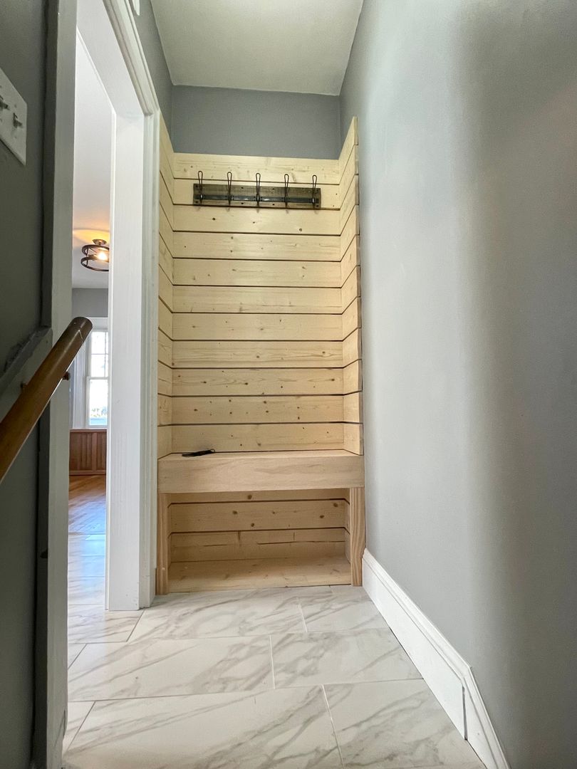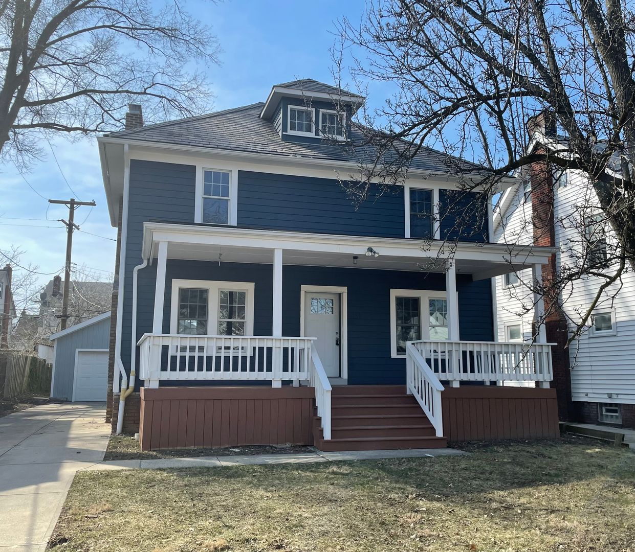This Charming home with 4 bedrooms and 2 bathrooms home offers cozy living with practical amenities. The kitchen features stainless steel appliances, elegant cabinets, granite countertops, and tiled backsplash and flooring. The open-concept kitchen and dining area include a breakfast bar—ideal for adding stools and enjoying your morning coffee. The living room highlights beautiful hardwood floors, a decorative fireplace, and ample windows for natural light. Upstairs, there are four bedrooms with fresh carpeting and a stylishly updated bathroom. Additional features include a walk-up unfinished attic, a full basement with laundry and a second full bathroom, a detached two-car garage, and a fenced backyard. The tenant is responsible for all utilities.